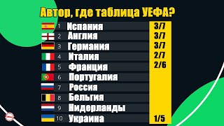 Таблица коэффициентов УЕФА определяет количество клубов делегируемое странами для выступления в еврокубках. В графе Команды указано количество клубов - стартовавших и оставшихся на текущий момент в еврокубках. Коэффициенты УЕФА на сегодня и сколько баллов у России Опубликовано.